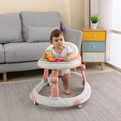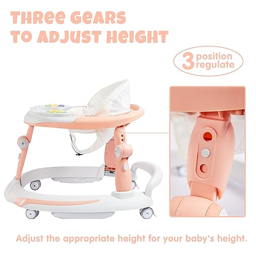 Fugualin 3 in 1 Baby Walker, Baby Walkers for Boys and Girls with Removable Footrest, Feeding Tray, Rocking Function & Music Tray(Without Battery), Foldable Activity Walker for Baby 6-18 Months