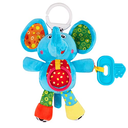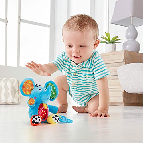 Develops skills & eye-hand coordination with toys to bat, grasp & kick