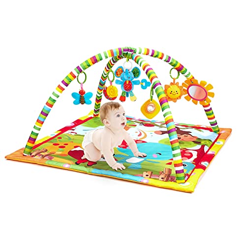 New Born Baby Playmat, Play Gym, Musical Activity Gym,Soft Toy, Fun Animals,Music,Textures,Rattle,Teethers, Mirror, Discovery Carpet for Infants Toddlers Newborn Kick and Playmat 0-36 Months