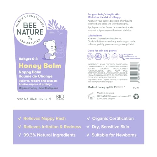 Bee Nature – Organic Baby Nappy Cream – Diaper Rash Cream – Relieves Nappy Rash, Irritation & Redness – 99% Natural – Soothes and Regenerates – Honey Diaper Balm – 2 Pieces(2 * 50ml)