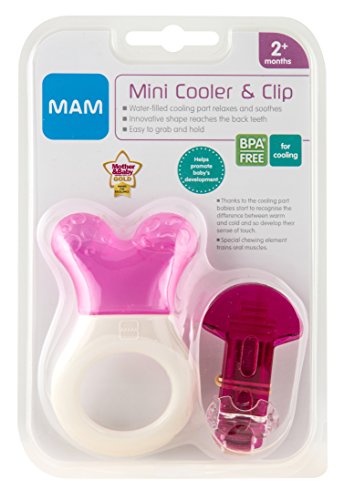Product details: MAM Mini Cooler & Clip, Cooling Component Comforts Teething Babies, Sensitive Gums Massaged by Baby Ring, Baby Teether Toy, Suitable for 0-3 years, Pink, Item Number: TR0902G