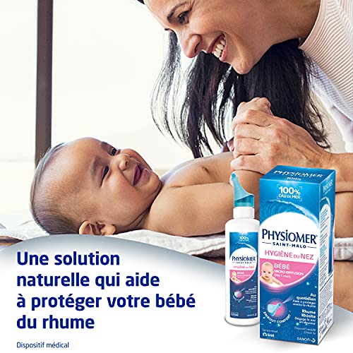 Physiomer Nasal Hygiene Micro-Diffusion 115 ml is indicated to clean the baby’s nose on a daily basis and thus strengthen the defences of the nasal mucous membrane. When your baby’s nose is clogged, it is forced to breathe through the mouth which is difficult for them and prevents them from taking their bottles in good conditions. On the other hand, the young baby does not know how to breathe through their mouth, it is important to ensure that there is no discomfort in nasal breathing. Sterile and preservative free. No propellant gas.