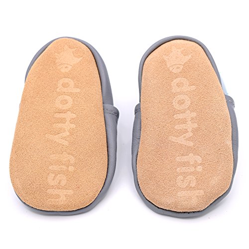 Dotty Fish Soft Leather Baby Shoes for Boys. Toddler Shoes. Non Slip. Animal Designs for Boys and Girls. 0-6 Months – 4-5 Years