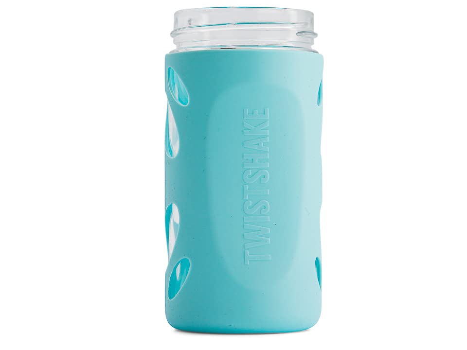 Twistshake’s baby bottle in glass is made of borosilicate glass that is ultra-durable and lightweight. The bottle is ergonomically designed for the best grip and is enclosed in a protective, BPA-free and removable silicone case that protects small hands from heat. This bottle is perfect for the breastfeeding baby. The teat is designed to resemble the mother’s breast, whilst also counteracting colic with a smart anti-colic valve that prevents unnecessary air from reaching your baby’s sensitive stomach. Of course, it is possible to exchange the teat for any of the others teats in our range so that your child can grow with the bottle. The glass is naturally odourless and free of harmful chemicals such as BPA, PVC and phthalates. The silicone case has volume markings in both ml and US fl oz. The baby bottle can be heated in a microwave and can withstand temperatures from freezing all the way up to boiling water. Due to the fact that the bottle is made of borosilicate glass, it is also scratch-resistant. The glass bottle can be washed on the top rack of the dishwasher, but we recommend that the other parts be washed by hand as they can be discoloured in the dishwasher.