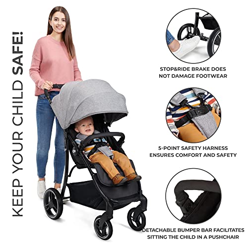 Kinderkraft TRIG2 Lightweight Stroller from Birth to 24 kg, Baby Pushchair, Easy Folding with One Hand, All Wheels Suspension, Ajustable Hood, Lie-Flat Position, Pink