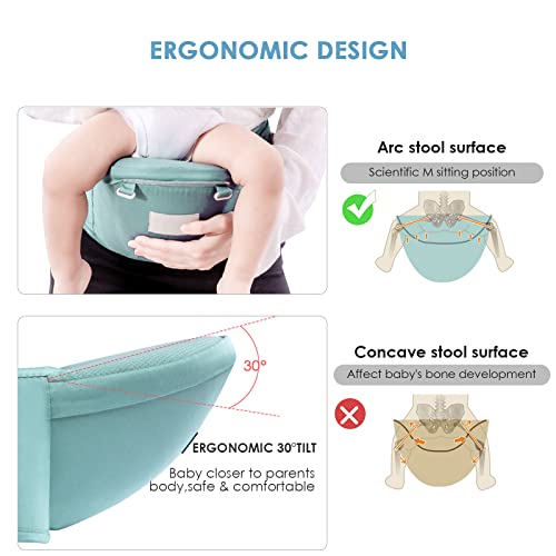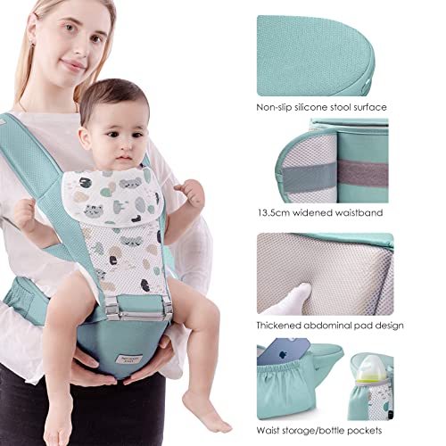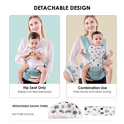 SONARIN Multifunction Baby Carrier with Hip Seat,Ergonomic Hipseat Baby Carrier Breathable Cotton Child Carrier Backpack Front Carrier with Saliva Bib for Newborn Toddler 0-36 Months(Green)