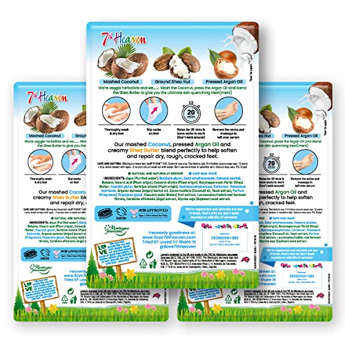 7th Heaven Softening Coconut Foot Mask Multipack (Pack of 3) with Shea Butter to Soften and Repair Dry, Rough and Cracked Feet (3 Pairs of Foot Treatment Socks)