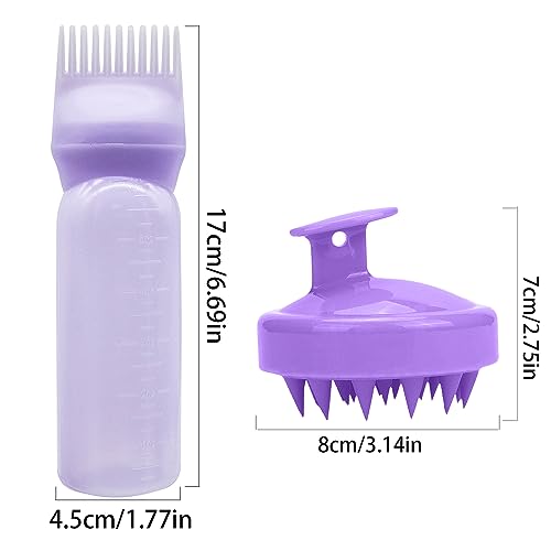 2 Pack Root Comb Applicator Bottle and Scalp Massager Shampoo Brush Hair Coloring Dye (Purple)