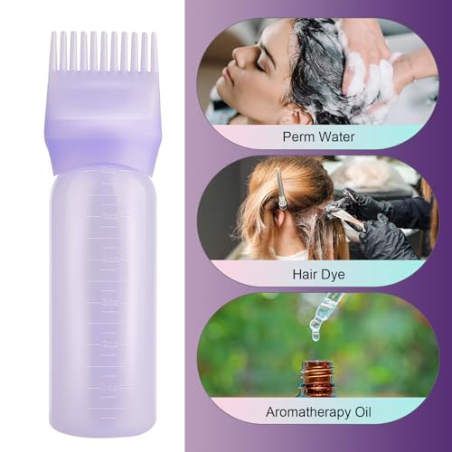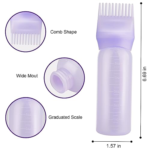 Gezimetie Root Comb Applicator Bottle with Scalp Massager Brush Comb 3PCS Hair Coloring Dye and Scalp Treatment Tools (Purple)