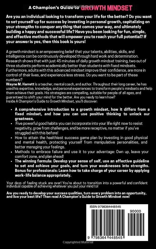 A Champion’s Guide to Growth Mindset: Develop Your Success Qualities and Achieve Your Goals. A Key to Resilience, Confidence and Self-Discipline. … Your Journey to Success and Happiness) Paperback – 18 Nov. 2022