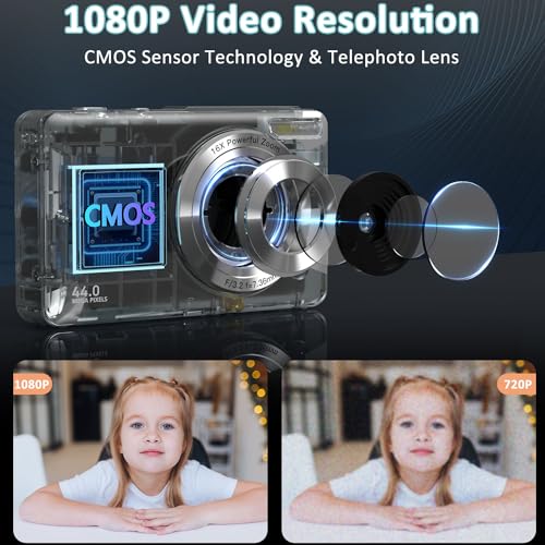 【FHD 1080P Video& 44MP Image Resolution】 This beginner digital camera for 9-15 kids has an Ultra HD 1080P video resolution and 44MP image resolution to capture the most exciting moments in better image or video quality. Younger and students can freely use the portable compact camera to record excellent moments anytime and anywhere.