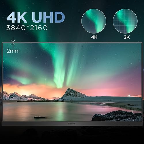 KOORUI 27 Inch Monitors, 4K Computer Monitors UHD(3840 * 2160), IPS, 6ms, 60Hz, 2x HDMI 2.0 & DisplayPort 1.4, Adpitive Sync, HDR10, VESA 100 * 100mm, 90% DCI-P3, Eye Care