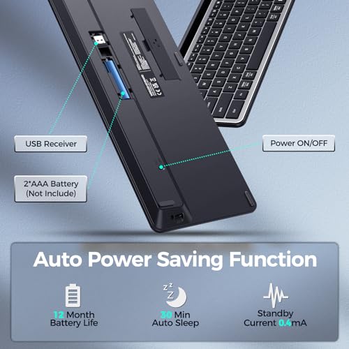 💎【Power Saving】Mac keyboard lasts 12 months+(2 AAA batteries needed), saving the trouble of frequent battery replacement. The computer keyboard will enter sleep mode if it is not used for 30 minutes. The office keyboard features 12 multimedia keys that can quickly access the volume control, brightness control, media, and home, greatly leveling up our work productivity.