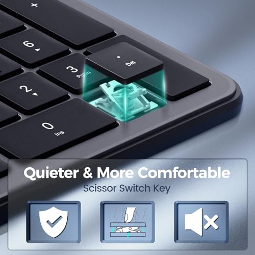 💎【Comfortable Typing】Bluetooth keyboard features scissor switches which have a more sturdy construction and a shorter key travel than other normal switches. So the iPad keyboard can offer more reactive and comfortable typing. For those who prefer a keyboard with quieter typing, this keyboard is excellent.