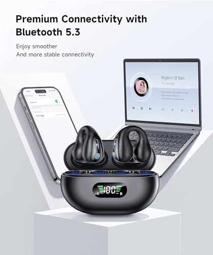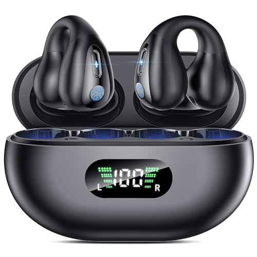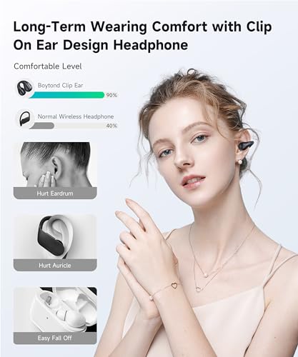 Boytond Wireless Headphones, Wireless Ear Clip Sport Headphones with HiFi Sound Quality and 36 Hours Playtime,Open Ear Bluetooth Headphones with IP7 Water Proof and LED Display Charging Case