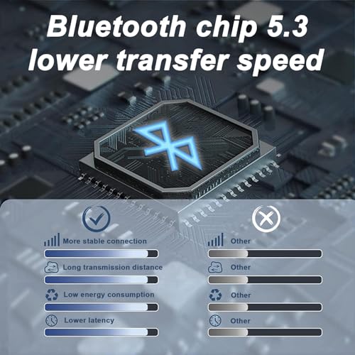 Bluetooth 5.3:Wireless bluetooth headphones adopt the advanced Bluetooth 5.3 Technology, the latest chip ensures the solid connection,fast transmission without signal loss or music dropouts within the receiving range up to 10m. which can provide high-quality stereo, powerful bass, and maintain low latency when playing or making videos.