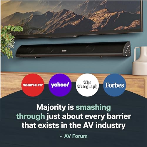 MAJORITY Bluetooth Sound Bar for TV | Built-in Subwoofer | 120 Watts 2.1 Channel Sound | RCA, Optical, and AUX Connection | Wall Mountable | Remote Control included Snowdon TV Soundbar