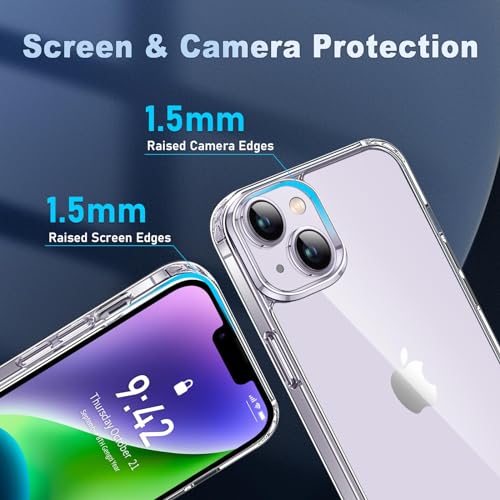 [Additional Protection] Raised 1.5mm lips around the screen and camera lens provide extra protection. Prevent your iphone 14’ s screen and camera against drops & scratches. Unique shock-absorption design: 4 corners effectively absorb shocks. Effectively protect your device against severe shocks and drops.