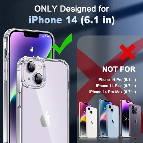 [Ultra Clarity & anti-yellowing]Only compatible with iPhone 14 6.1-Inch, Selected TPU PC material, which provide long-lasting clarity, never yellow, perfect showing off the original color.
