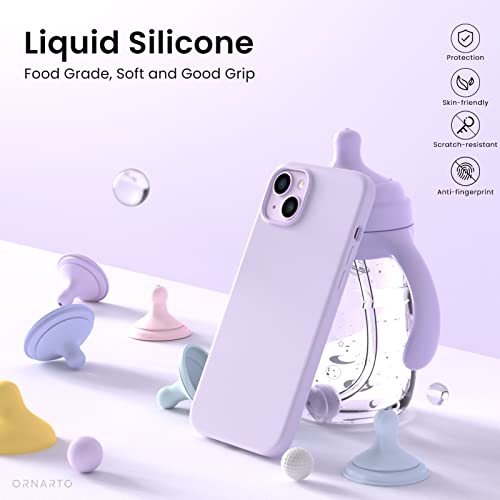 ORNARTO Compatible with iPhone 14 Case 6.1″, Slim Liquid Silicone 3 Layers Full Covered Soft Gel Rubber Case Cover 6.1 inch-Pastel lilac