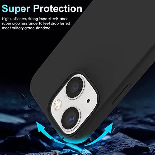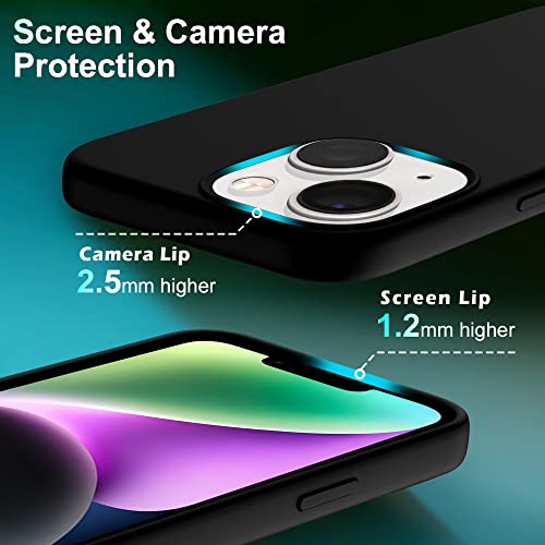 YATWIN Case Compatible for iPhone 14 with 1 Pack Screen Protector + 1 Pack Camera Lens Protector, Liquid Silicone Slim Soft Rubber Shockproof Phone Case Compatible for iPhone 14 (6.1Inch) – Black