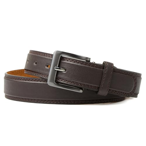 Men Leather Belt Double Stitched leather lined belt for Jeans, Suit, Work and Special Occasion Black/Brown