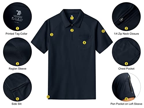 Rdruko Men’s 1/4 Zip Polo Shirts with Pocket Summer Short Sleeve Breathable Quick Dry Golf Tennis Tops Casual Smart Work T Shirts