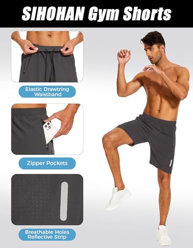 SIHOHAN Men’s Gym Shorts 7 Inch Sports Shorts Quick Dry Running Shorts Athletic Lightweight Workout Shorts with Zipper Pockets
