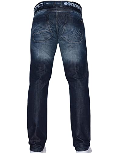 Crosshatch – Mens Everyday Essential Classic ‘Embossed’ Casual Straight Leg Smart Stretch Slim Fit 5 Pocket Denim Cotton Rich Jeans – W30-W40