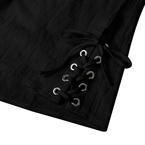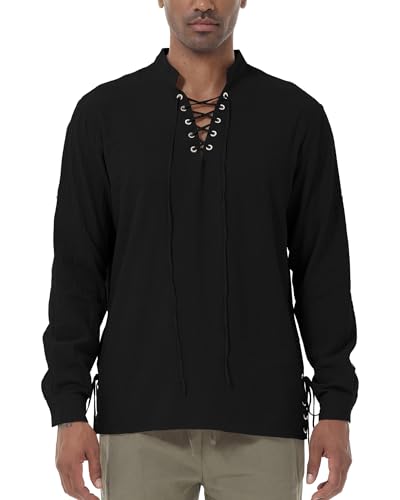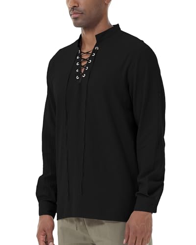 NANAMEEI Men’s Cotton Classic Lace Up Long Sleeve Henley Lace Up Shirt