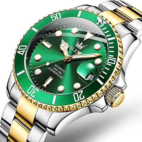 OLEVS Men’s Automatic Watch, Gold Silver Tone Stainless Steel Self Winding Dress Watch, Luxury Rotating Bezel Waterproof Date Display Analog Mechanical Watch for Men