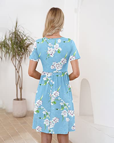 AUSELILY Womens Summer Dress Short Sleeve Knee Length Dress Casual Empire Dress A Line Swing Dresses with Pockets
