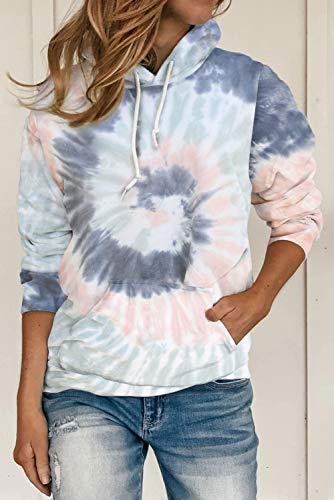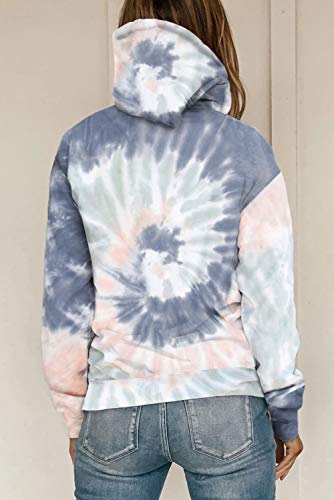 HVEPUO Womens Tie Dye Hoodies Fall Lightweight Comfy Long Sleeve Blue Hoodie Winter Drawstring Kangaroo Pockets Warm Sweatshirts For Women Blue XL