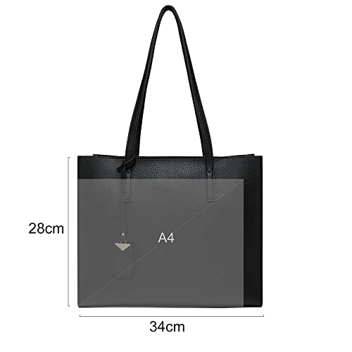MORGLOVE Women’s Tote Bag Large Handbag Soft Leather Simple Shoulder Bag with Zipper for School Work Leisure (A-Black)
