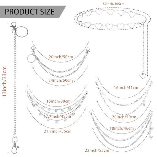 DKDDSSS 6 PCS Belly Chain, Waist Chain Chain Belt Silver Adjustable Body Chain Beach Body Chain Jewelry Wallet Chain Hip Hop Gothic Punk Trousers Chain for Women and Girls Skirt Pants