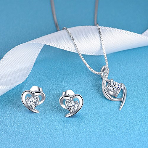 EVERU Silver Jewellery Sets for Women,925 Sterling Silver Heart Necklaces and Earrings Sets with Sparkling AAA Cubic Zirconia