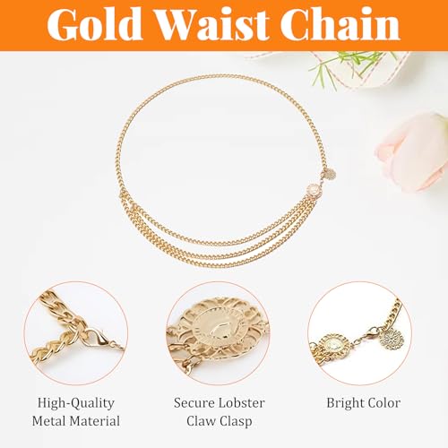 Gold Women Chain Belt, Multi Layer Metal Waist Chain, Adjustable Jewelry Belt, Belly Chain Belt for Women Dresses,Jeans,Trousers