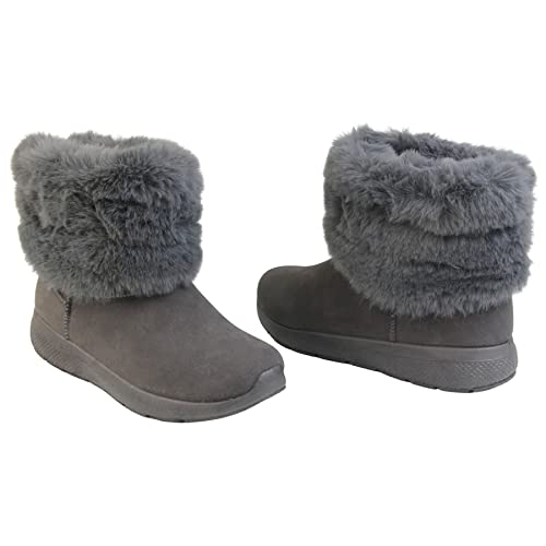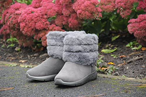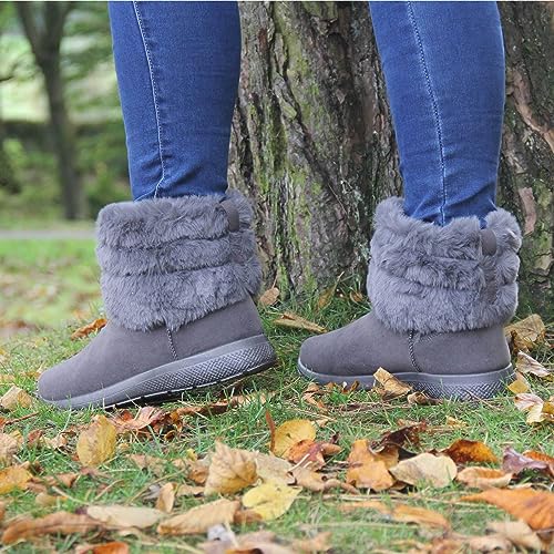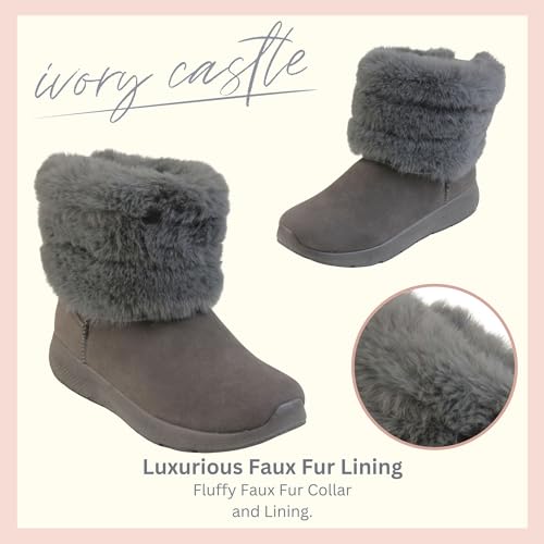 Ivory Castle Women’s Boots Flat Ankle Boots Ladies Boots with Low Wedge Heels Colourful Fluffy Boots in Black, Grey, Brown and Navy Blue – Winter Fashion Ankle Boots For Women Size 3 4 5 6 7 8