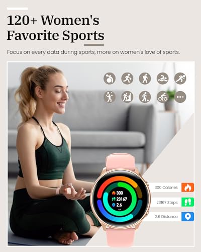 【120+ Sport Modes】The ladies smart watch supports 120+ sports modes, you can choose a appropriate sport mode. It has a variety of built-in sensors that can provide you with a wealth of information about your physical training, including steps, distance, calories, heart rate and more. It is the perfect fitness partner for women.