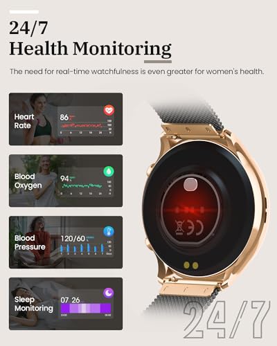 【24-Hour Health Care】The fitness tracker watch improves female function, supports menstrual prediction, observational tracking the best time for pregnancy and childbirth, records whether your cycle is regular or close to menopause. It can also monitor your heart rate, blood oxygen, blood pressure, sleep status, etc. and meets the needs of women of all ages. They are ideal gifts for women: your mother, wife or girlfriend.