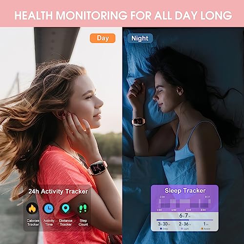Ddidbi Smart Fitness Watch for Women(Answer/Make Calls), 1.85″ HD Touch Screen with Sleep Heart Rate Monitor, 112 Sport Modes, IP68 Waterproof Activity Trackers Compatible with Android IOS(Pink)