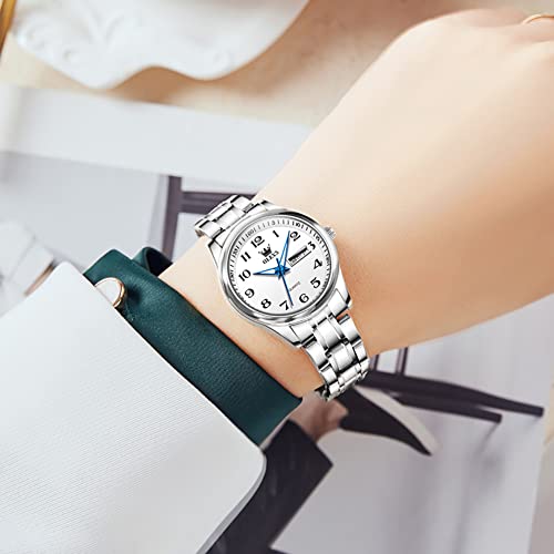 OLEVS Women Watch Classic Easy Read Number Dial Stainless Steel Strap Fashion Analogue Quartz Date Waterproof Ladies Watch