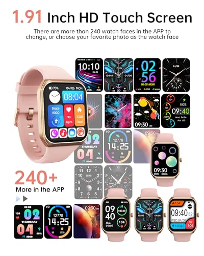 Smart Watch for Women – 1.91″ Smartwatches With Answer/Make Calls, 24h Heart Rate Sleep Blood Oxygen Monitor,Step Counter,112+ Sports,IP68 Waterproof,Stress Relief Games Compatible With Android Ios