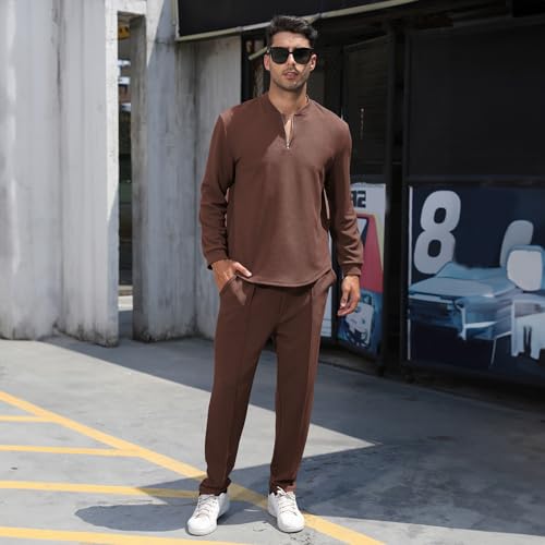 FZNHQL Fashion Men’s Tracksuits 2 Piece Casual Athletic Jogging Outfits Short/Long Sleeve Track Suits for Men Set