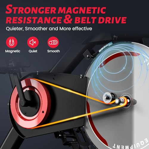 【More Smooth and Quiet 】 Unlike the stationary bikes online that are with a chain drive or felt pad resistance system, this No-touch MAGNETIC RESISTANCE indoor bike and belt drive stationary bicycle provides a smoother and quieter ride, making the bike more reliable and more suitable for shared spaces. It won’t disturb your apartment neighbors or sleeping kids and almost 100% maintenance-free.