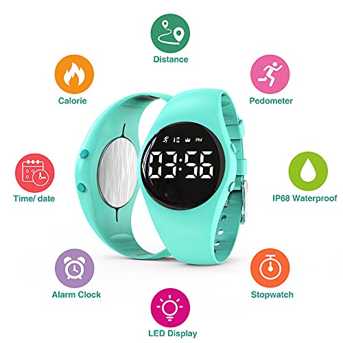 Focwony Led Digital Pedometer Watch , Digital Steps Tracker , Non-Bluetooth, Vibrating Alarm Clock, Stopwatch, Great Gift for kids Children Teens Girls Boys Women