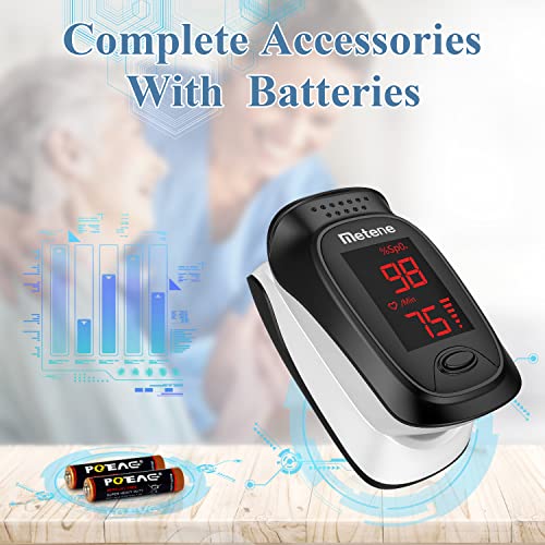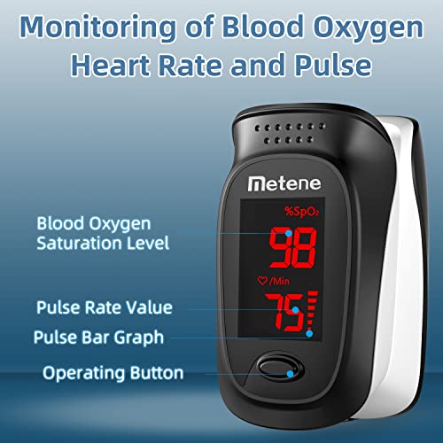 Metene Pulse Oximeter Fingertip, Blood Oxygen Saturation Monitor, Heart Rate Monitor and SpO2 Levels, Portable Pulse Oximeter with Case, Lanyard and Batteries