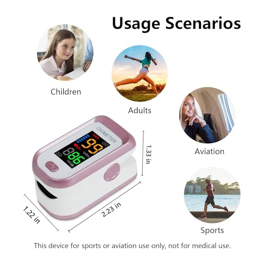 ☀【Portable Design】This pulse oximeter light-weight and compact, easy to handle and to carry with you for results at home or outdoors. Blood oxygen monitor is for sport and aviation use only, This device is ideal for use during sports activities such as mountain climbing, running, biking, etc