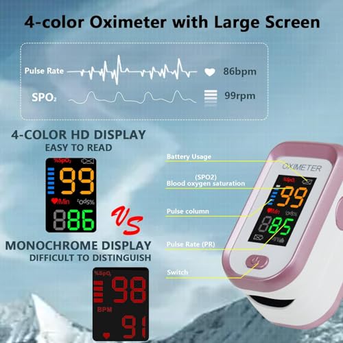 Pulse Oximeter, Fingertip Blood Oxygen SpO2 Heart Rate Monitor, Pulse Oxygen Saturation Monitor Adult and Child, Accurate and Fast Readings, Finger Oximeter with Lanyard
