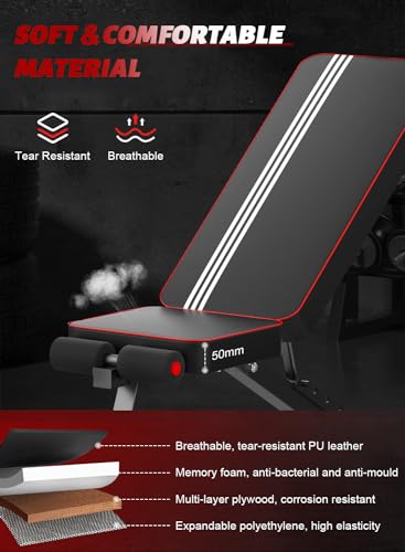 đŸ’Ș【5CM Comfort Cushion & Backrest】We offer you 31cm wider backrest and a breathable, wear-resistant PU leather seat. The Cushion comes with 5cm thick soft foam padding for extra abrasion resistance. High quality materials ensure a comfortable and safe training experience.